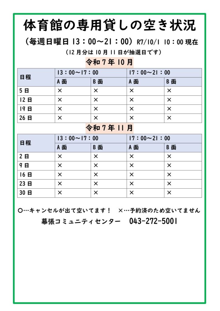 ※幕張コミュニティセンターが発行する「体育館個人使用回数券」がご利用になれます。