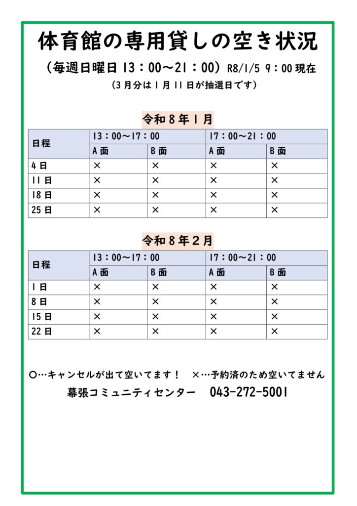 ※幕張コミュニティセンターが発行する「体育館個人使用回数券」がご利用になれます。