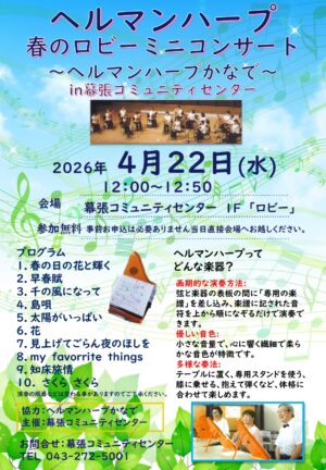 4月22日(水)ヘルマンハープ 春のロビーミニコンサート~ヘルマンハープかなで~ 開催New!!