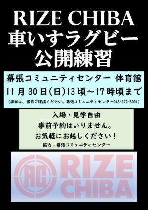 11月30日(日)ウィルチェアラグビー応援事業!RIZE CHIBA 公開練習!New!!