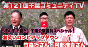 お笑いコンビアップダウンの竹森巧さん、阿部浩貴さんをゲストに、第121回千葉コミュニティTVを千葉市稲毛区穴川コミュニティセンターから公開生放送!