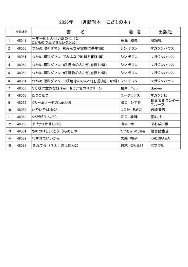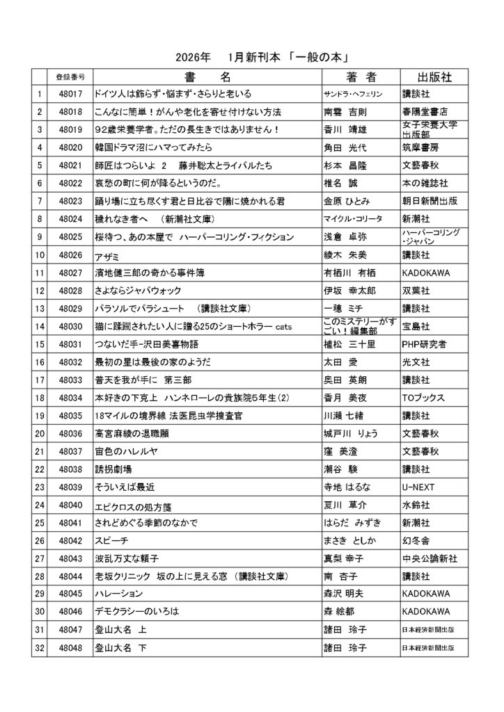 1月の新刊のご案内です。話題の新刊、ご要望のあった新刊が入荷しています。この機会に図書室にお立ち寄りください。