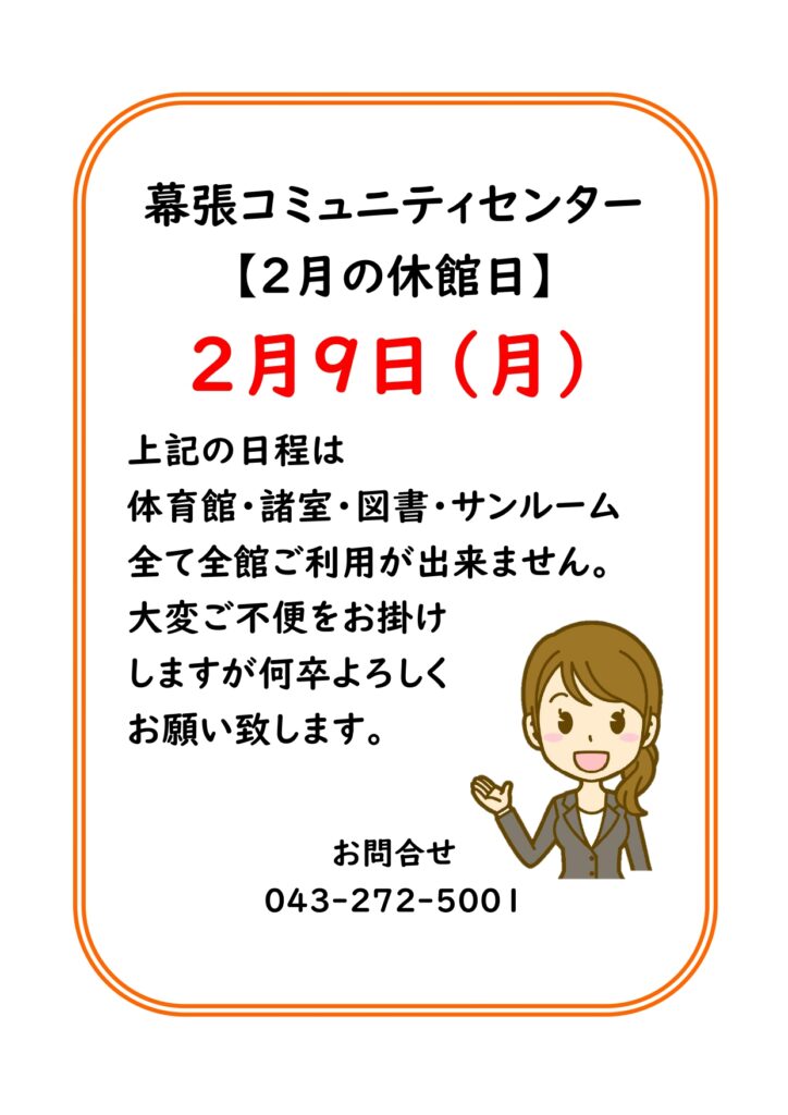 2月9日(月)休館日のお知らせ