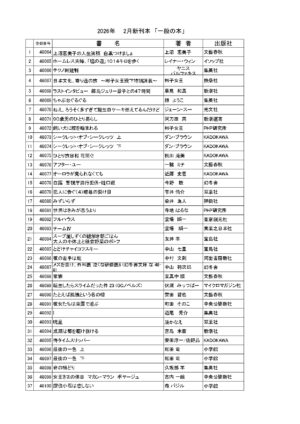 2月の新刊のご案内です。話題の新刊、ご要望のあった新刊が入荷しています。この機会に図書室にお立ち寄りください。