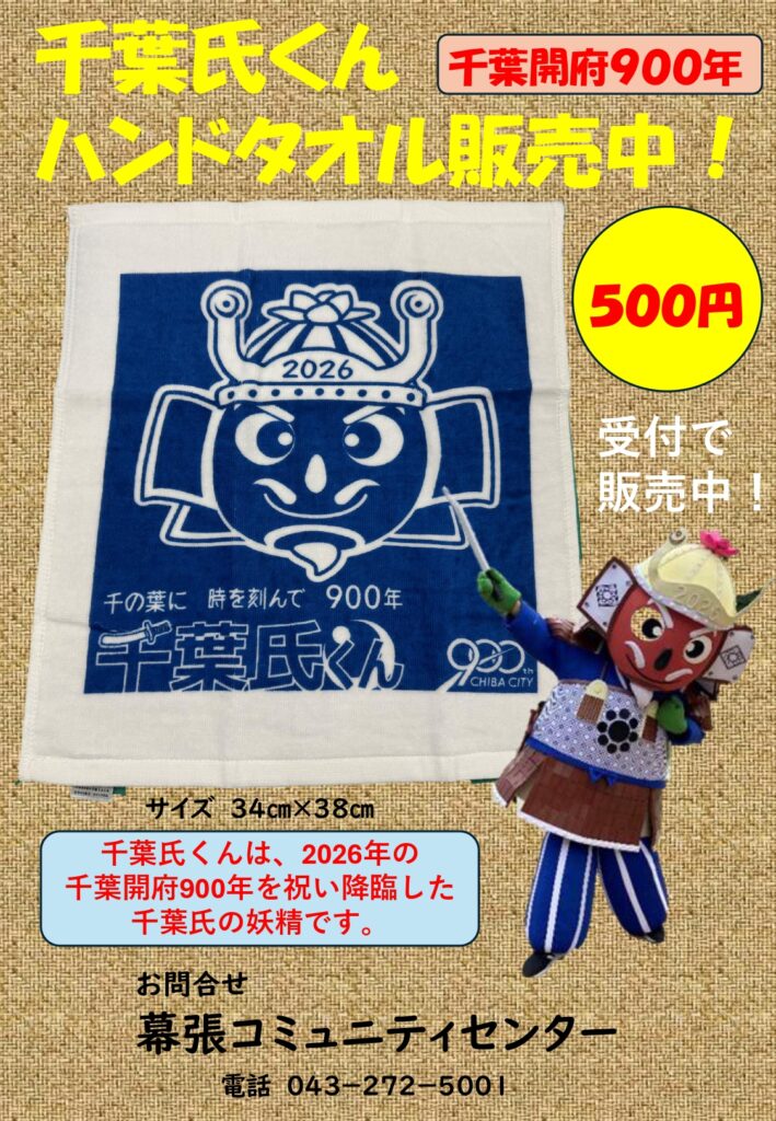 幕張コミュニティセンターでは、千葉開府900年を記念して、千葉氏くんハンドタオルの販売を開始します。郷土千葉のパイオニア千葉氏をモチーフとした「千葉氏くんハンドタオル」を手にして、千葉開府900年をお祝いしましょう!