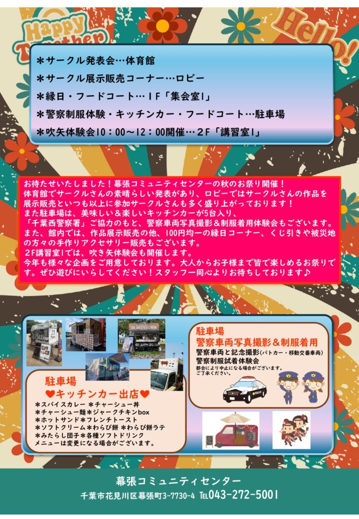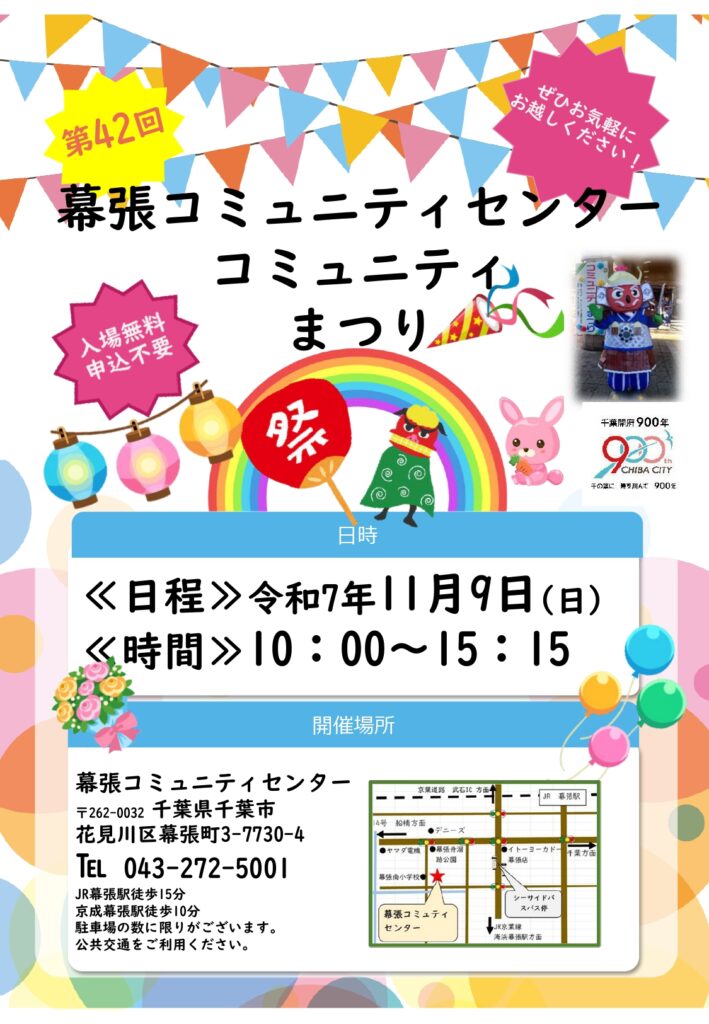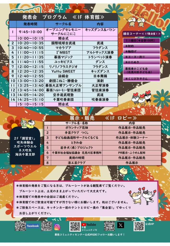 11月9日幕張コミュニティセンター・コミュニティまつり開催!プログラムをアップしました。オープニングセレモニーは、9時45分から体育館で実施します!