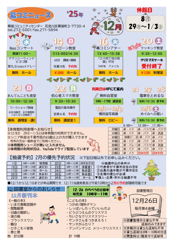 幕張コミュニティセンターでは、月に1回、「幕コミニュース」を作成しております。