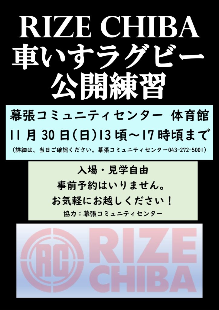 11月30日(日)ウィルチェアラグビー応援事業!RIZE CHIBA 公開練習!