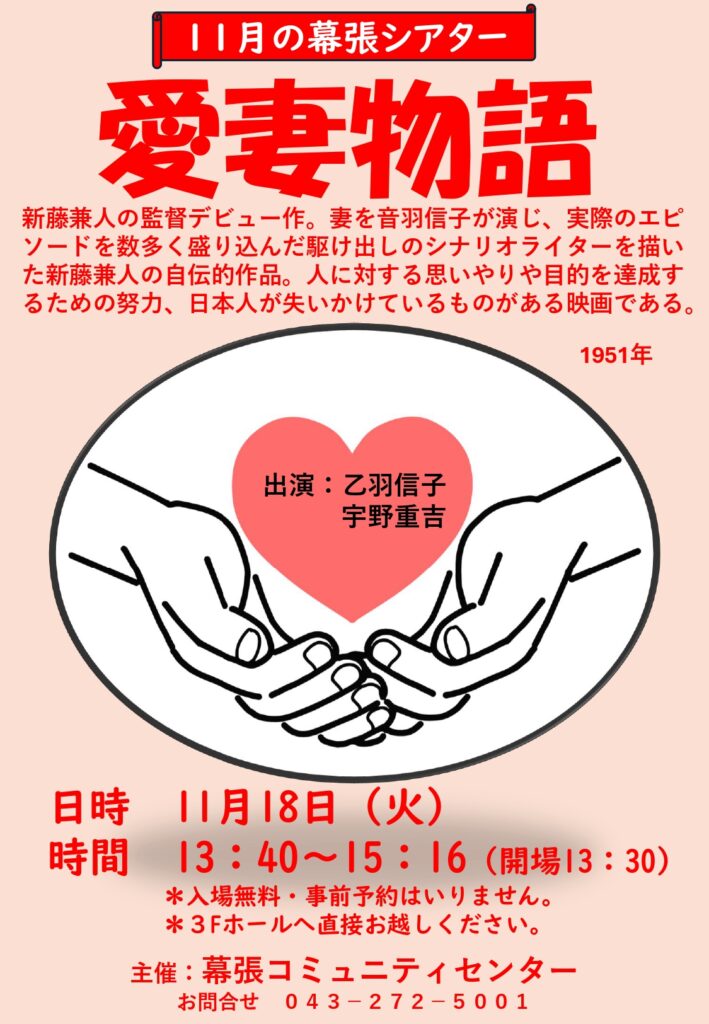 11/18(火)の幕張シアターは、「愛妻物語」(音羽信子・宇野重吉出演)を上映します!