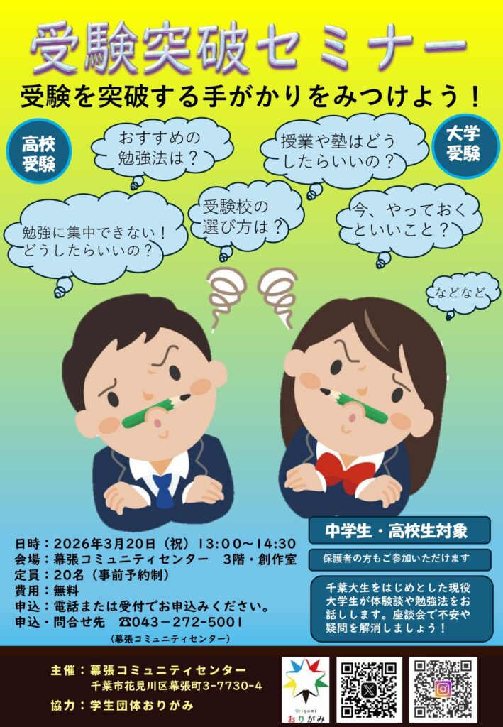 3/20(祝日)受験突破セミナー開催!中高生対象!!